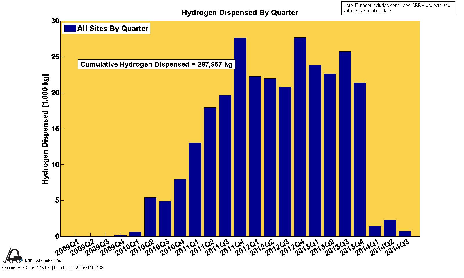 Hydrogen Dispensed by Quarter, CDP MHE 104, 3/31/2015