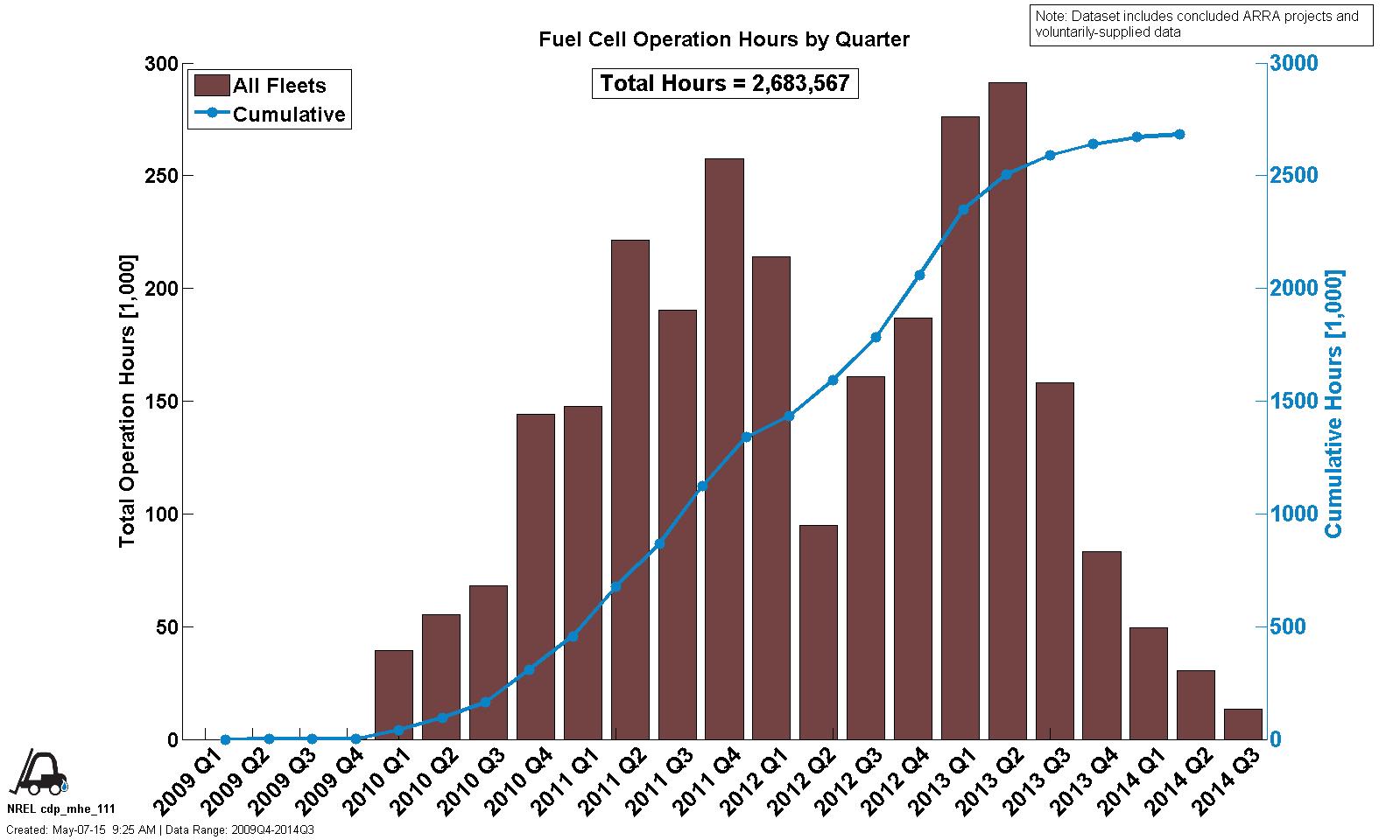 Operating Time at Fuel Cell Power Levels, CDP MHE 117, 3/31/2015