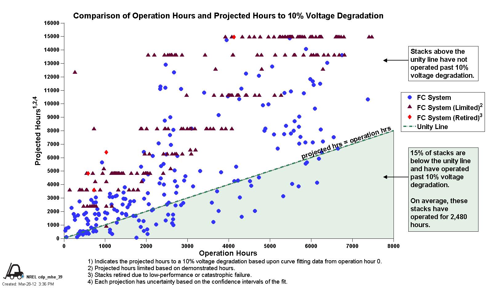 Fuel Cell Operation Hours and Durability, CDP ARRA MHE 39, 3/28/2012