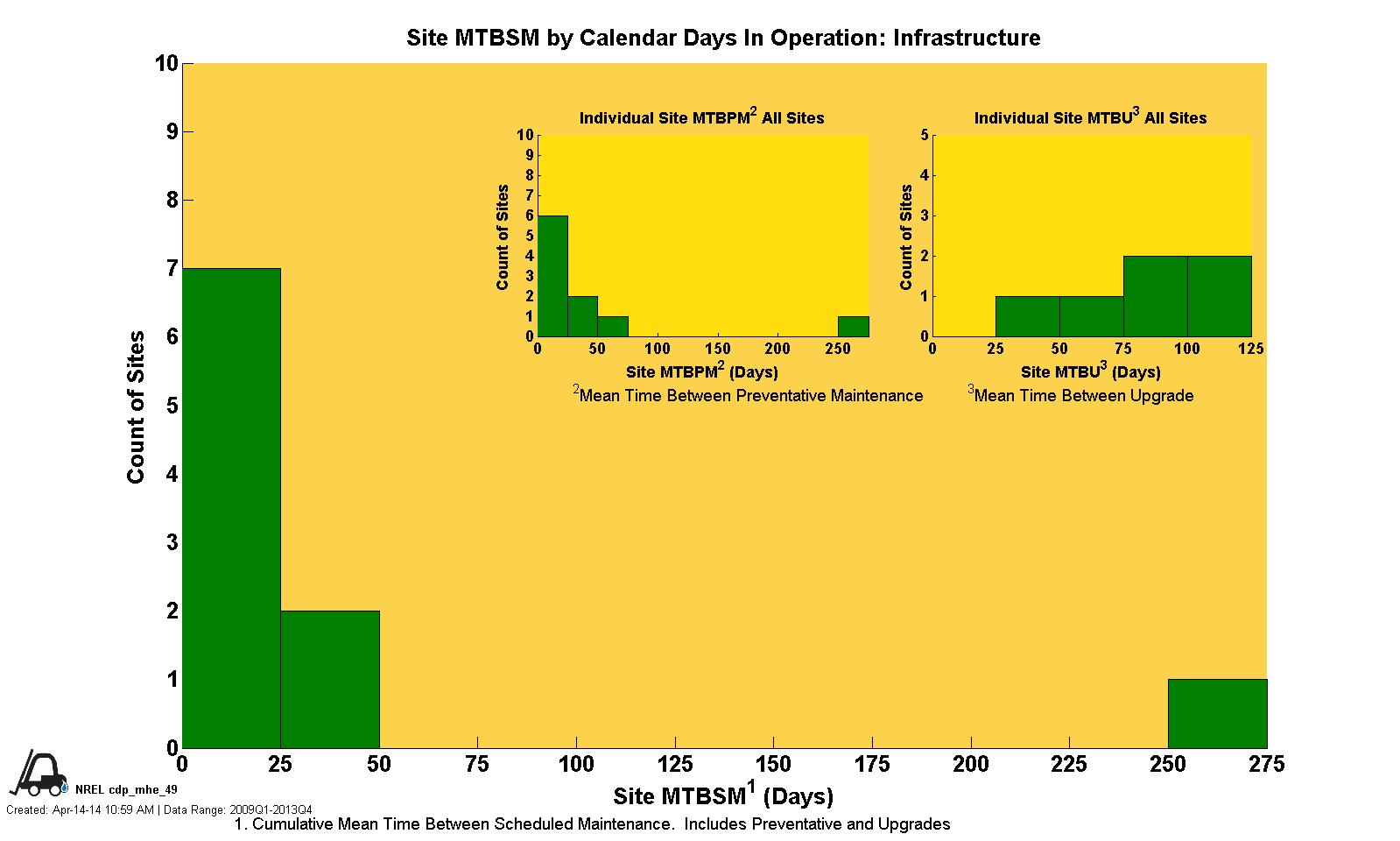 Infrastructure Mean Time Between Scheduled Maintenance, CDP MHE 49, 4/4/2014